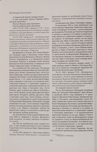 Челобитная царю Петру Алексеевичу гостя Семена Гаврилова о регистрации меновной и поступной сделок с Иваном и Григорием Мокеевыми детьми Яновыми, поступившимися челобитчику беглым крестьянином Вахромеем Федоровым, вымененным ранее за своих же беглых крестьян у Гаврилова. 1696 г. февраля 18 // ГИАНО. Ф. 717. Оп. 1. Д. 52. Л. 1-88об.