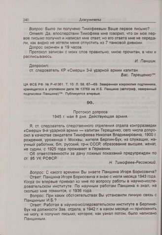 Протокол допроса Н.В. Тимофеева-Ресовского. 8 мая 1945 г. // ЦА ФСБ РФ. № Р-41361. Т. 10. Л. 70-73. Заверенная ксерокопия подлинника.