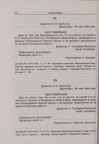 Н.В. Тимофеев-Ресовский. Удостоверение С.Н. Варшавского. 18 мая 1945 г.