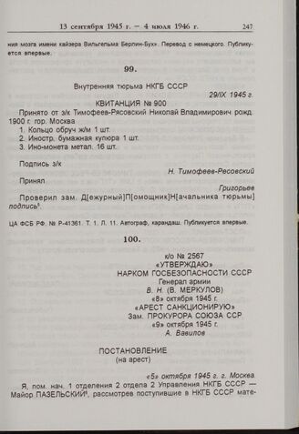 Следственные материалы -- Дело Н.В. Тимофеева-Ресовского