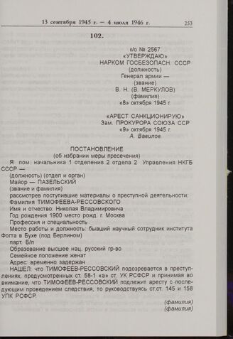 Следственные материалы -- Дело Н.В. Тимофеева-Ресовского