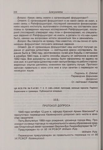 Протокол допроса В. Пютца. 12 октября 1945 г. // ЦА ФСБ РФ. № Р-41361. Т. 10. Л. 76-91. Ксерокопия рукописного подлинника.