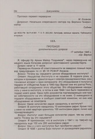 Протокол дополнительного допроса К. Циммера. г. Берлин. 17 октября 1945 г. // ЦА ФСБ РФ. № Р-41361. Т. 3. Л. 268-278. Автограф.