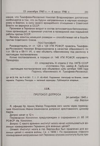 Следственные материалы -- Дело Н.В. Тимофеева-Ресовского