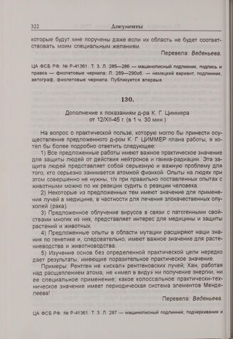 Дополнение к показаниям К. Циммера. 12 декабря 1945 г. [2] // ЦА ФСБ РФ. № Р-41361. Т. 3. Л. 287 — машинописный подлинник, Л. 291 — немецкий вариант, подлинник.