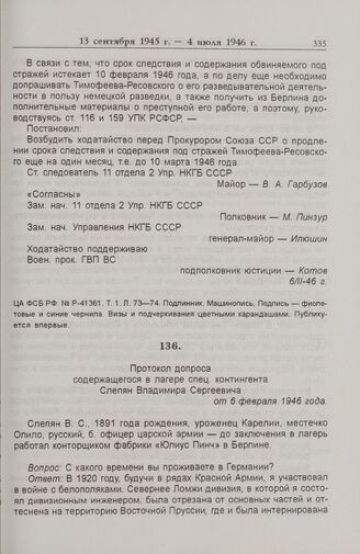 Протокол допроса В.С. Слепяна. 6 февраля 1946 г. // ЦА ФСБ РФ. № Р-41361. Т. 1. Л. 246-251 — подлинник, Л. 243-245 — машинописная копия.