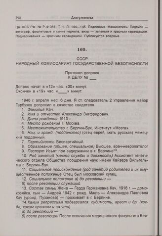 Протокол допроса А.С. Кача. 6 апреля 1946 г. // ЦА ФСБ РФ. № Р-41361. Т. 1. Л. 288-294об. Подлинник.