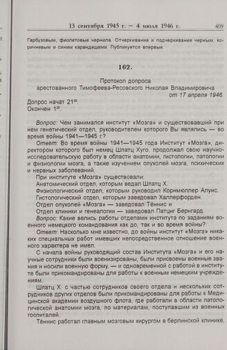 Протокол допроса арестованного Тимофеева-Ресовского Николая Владимировича от 17 апреля 1946 г.