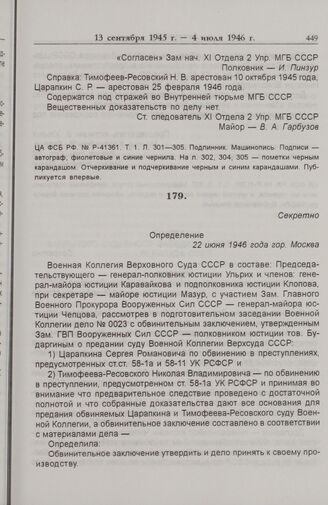 Следственные материалы -- Дело Н.В. Тимофеева-Ресовского