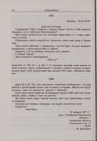 М. Дельбрюк — Н.В. Тимофееву-Ресовскому. 22 апреля 1977 г. // Архив РАН. Ф. 1750. Оп. 1. Д. 250. Л. 11-11об. Подлинник.