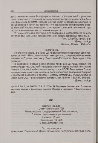 Протокол опроса X. Пальм. 25 мая 1988 г.