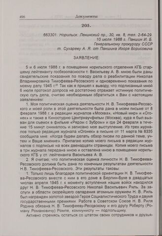 Следственные материалы -- Дело Н.В. Тимофеева-Ресовского