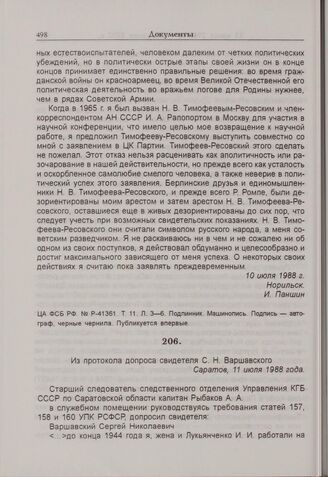 Из протокола допроса свидетеля С.Н. Варшавского. Саратов. 11 июля 1988 г. // ЦА ФСБ России. № Р-41361. Т. 11. Л. 38-42. Подлинник. Машинопись.