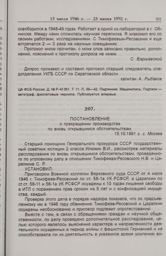 Следственные материалы -- Дело Н.В. Тимофеева-Ресовского
