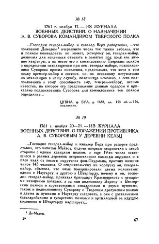 Из журнала военных действий. О поражении противника А.В. Суворовым у деревни Кельц. 1761 г. ноября 20-21