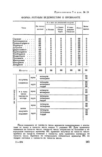 Приложение 7 к Полковому учреждению. Форма ротным ведомостям о провианте
