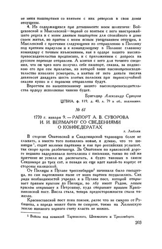 Рапорт А.В. Суворова И.И. Веймарну со сведениями о конфедератах. г. Люблин. 1770 г. января 9 // ЦГВИА, ф. 119, д. 40, л. 176 и об., подлинник.