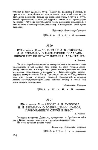 Рапорт А.В. Суворова И.И. Веймарну о возвращении конвоя, провожавшего обозы в Брест. г. Люблин. 1770 г. января 31 // ЦГВИА, ф. 119, д. 41, л. 56, подлинник.