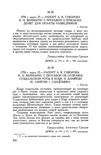 Рапорт А.В. Суворова И.И. Веймарну с просьбой об отправке Суздальской роты в Коцк и занятии М. Лангом г. Сандомира. г. Люблин. 1770 г. марта 27 // ЦГВИА, ф. 119, д 13, л. 479, подлинник.