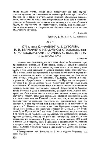 Главная Русские полководцы Русские полководцы. А.В. Суворов А.В. Суворов. Т. I Документы Рапорт А.В. Суворова И.И. Веймарну о неудачном столкновении с конфе...