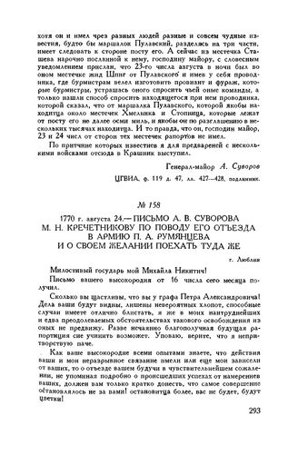 Главная Русские полководцы Русские полководцы. А.В. Суворов А.В. Суворов. Т. I Документы Письмо А.В. Суворова М.Н. Кречетникову по поводу его отъезда в арми...