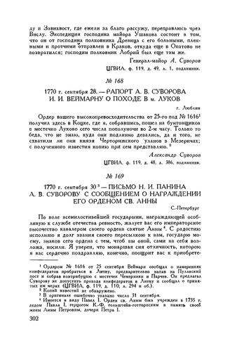 Рапорт А.В. Суворова И.И. Веймарну о походе в м. Луков. г. Люблин. 1770 г. сентября 28 // ЦГВИА, ф. 119, д. 48, л. 386, подлинник.