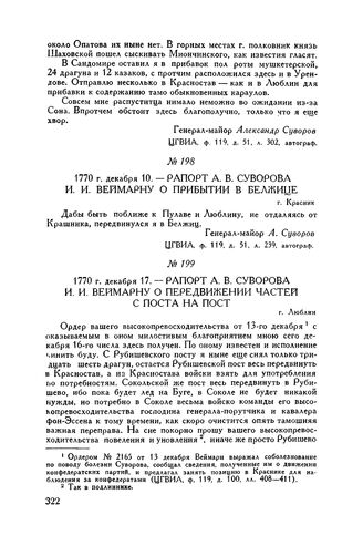 Рапорт А.В. Суворова И.И. Веймарну о передвижении частей с поста на пост. г. Люблин. 1770 г. декабря 17 // ЦГВИА, ф. 119, д. 51, л. 319, дешифровка.