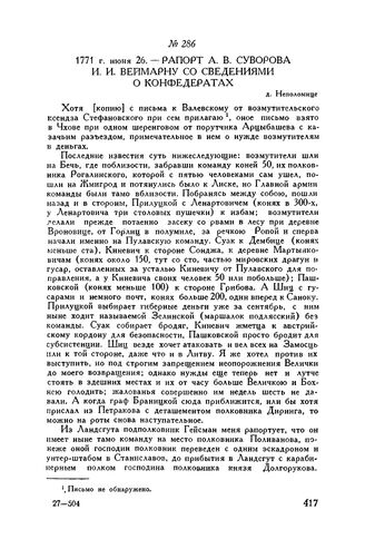 Рапорт А.В. Суворова И.И. Веймарну со сведениями о конфедератах. д. Неполомице. 1771 г. июня 26