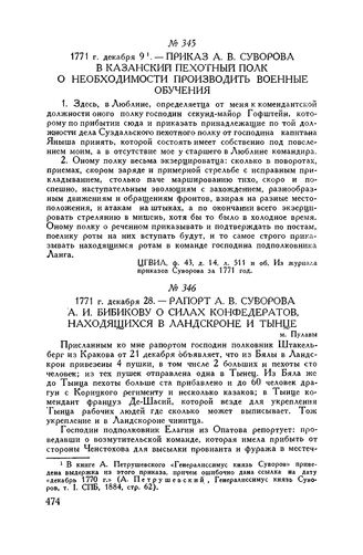 Рапорт А.В. Суворова А.И. Бибикову о силах конфедератов, находящихся в Ландскроне и Тынце. м. Пулавы. 1771 г. декабря 28 // ЦГВИА, ф. 104, д. 50, лл. 82-83, подлинник.