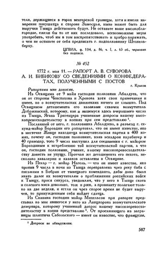 Главная Русские полководцы Русские полководцы. А.В. Суворов А.В. Суворов. Т. I Документы Рапорт А.В. Суворова А.И. Бибикову со сведениями о конфедератах, по...