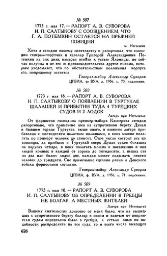 Рапорт А.В. Суворова И.П. Салтыкову об определении в гребцы не болгар, а местных жителей. Лагерь при Негоештах. 1773 г. мая 18 // ЦГВИА, ф. ВУА, д. 1956, л. 86, подлинник.