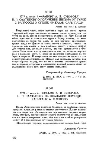 Главная Русские полководцы Русские полководцы. А.В. Суворов А.В. Суворов. Т. I Документы Рапорт А.В. Суворова И.П. Салтыкову о получении письма от турок с з...