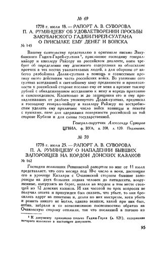 Главная Русские полководцы Русские полководцы. А.В. Суворов А.В. Суворов. Т. II Документы Рапорт А.В. Суворова П.А. Румянцеву об удовлетворении просьбы Закуб...