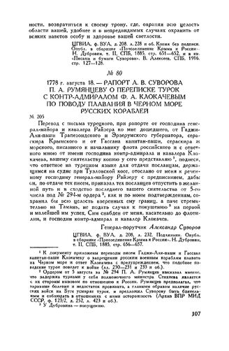 Главная Русские полководцы Русские полководцы. А.В. Суворов А.В. Суворов. Т. II Документы Рапорт А.В. Суворова П.А. Румянцеву о переписке турок с контр-адмир...