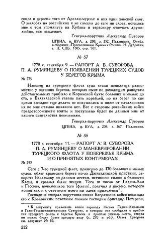 Рапорт А.В. Суворова П.А. Румянцеву о появлении турецких судов у берегов Крыма. 1778 г. сентября 9