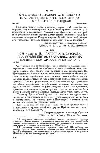 Рапорт А.В. Суворова П.А. Румянцеву об указаниях, данных Шагин-Гиреем Арслан-Гирей-султану. 1778 г. октября 18