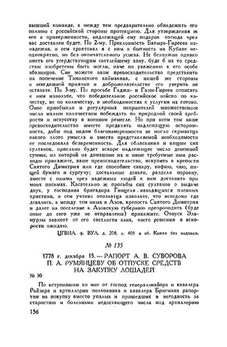 Рапорт А.В. Суворова П.А. Румянцеву об отпуске средств на закупку лошадей. 1778 г. декабря 15 // ЦГВИА, ф. ВУА, д. 208, л. 388 и об. Подлинник.