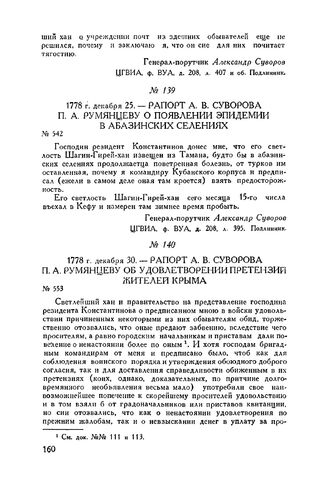 Рапорт А.В. Суворова П.А. Румянцеву о появлении эпидемии в Абазинских селениях. 1778 г. декабря 25 // ЦГВИА, ф. ВУА, д. 208, л. 395. Подлинник.