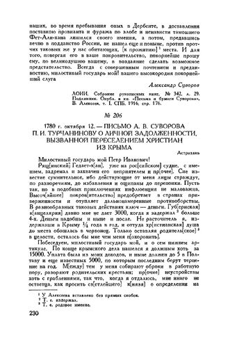 Письмо А.В. Суворова П.И. Турчанинову о личной задолженности, вызванной переселением христиан из Крыма. Астрахань. 1780 г. октября 12