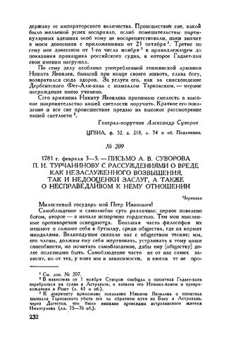 Письмо А.В. Суворова П.И. Турчанинову с рассуждениями о вреде как незаслуженного возвышения, так и недооценки заслуг, а также о несправедливом к нему отношении. Черепаха. 1781 г. февраля 3-5 // ЛОИИ, Собрание рукописных книг, № 342, лл. 32-33 об. Автограф. Опубл. в кн. «Письма и бумаги Суворова». В. Алексеев, т. I, СПБ, 1916, стр. 179-186.