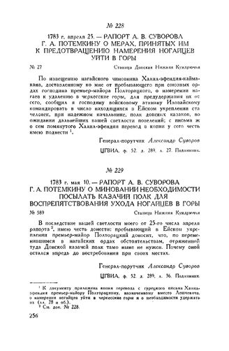 Рапорт А.В. Суворова Г.А. Потемкину о миновании необходимости посылать казачий полк для воспрепятствования ухода ногайцев в горы. Станица Нижняя Кундрючья. 1783 г. мая 10 // ЦГВИА, ф. 52. д. 289, л. 36. Подлинник.