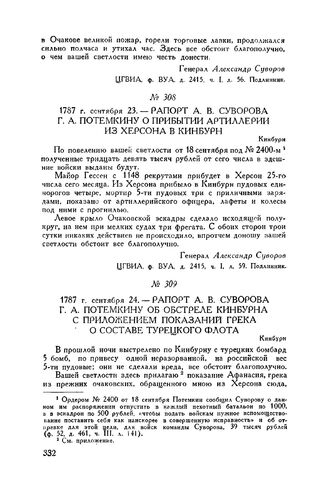 Главная Русские полководцы Русские полководцы. А.В. Суворов А.В. Суворов. Т. II Документы Рапорт А.В. Суворова Г.А. Потемкину о прибытии артиллерии из Херсон...