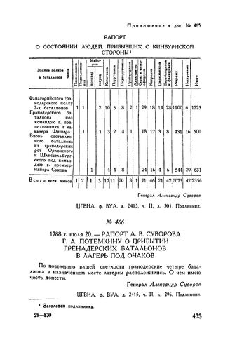 Главная Русские полководцы Русские полководцы. А.В. Суворов А.В. Суворов. Т. II Документы Рапорт А.В. Суворова Г.А. Потемкину о прибытии гренадерских батальо...