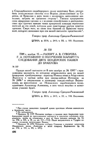 Главная Русские полководцы Русские полководцы. А.В. Суворов А.В. Суворов. Т. II Документы Рапорт А.В. Суворова Г.А. Потемкину о получении маршрута следования...