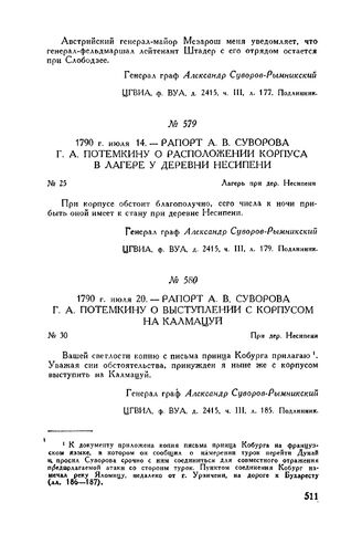 Главная Русские полководцы Русские полководцы. А.В. Суворов А.В. Суворов. Т. II Документы Рапорт А.В. Суворова Г.А. Потемкину о выступлении с корпусом на Кал...