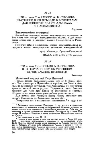 Главная Русские полководцы Русские полководцы. А.В. Суворов А.В. Суворов Т. III. 1791-1798 Документы Рапорт А.В. Суворова Екатерине II об отъезде в Роченсальм для приня...