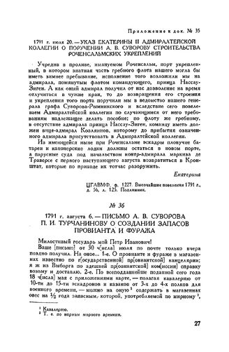Главная Русские полководцы Русские полководцы. А.В. Суворов А.В. Суворов Т. III. 1791-1798 Документы Письмо А.В. Суворова П.И. Турчанинову о создании запасов провианта ...