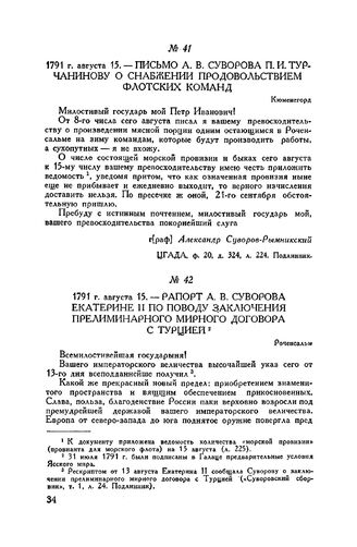 Письмо А.В. Суворова П.И. Турчанинову о снабжении продовольствием флотских команд. Кюменегорд. 1791 г. августа 15 // ЦГАДА, ф. 20, д. 324, л. 224. Подлинник.