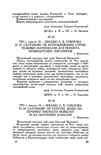 А.В. Суворов: Сб. док в 4 т. Т. III. 1791-1798. — М.: Воениздат, 1952.