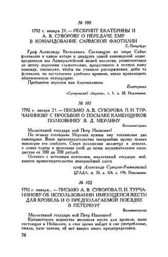 А.В. Суворов: Сб. док в 4 т. Т. III. 1791-1798. — М.: Воениздат, 1952.